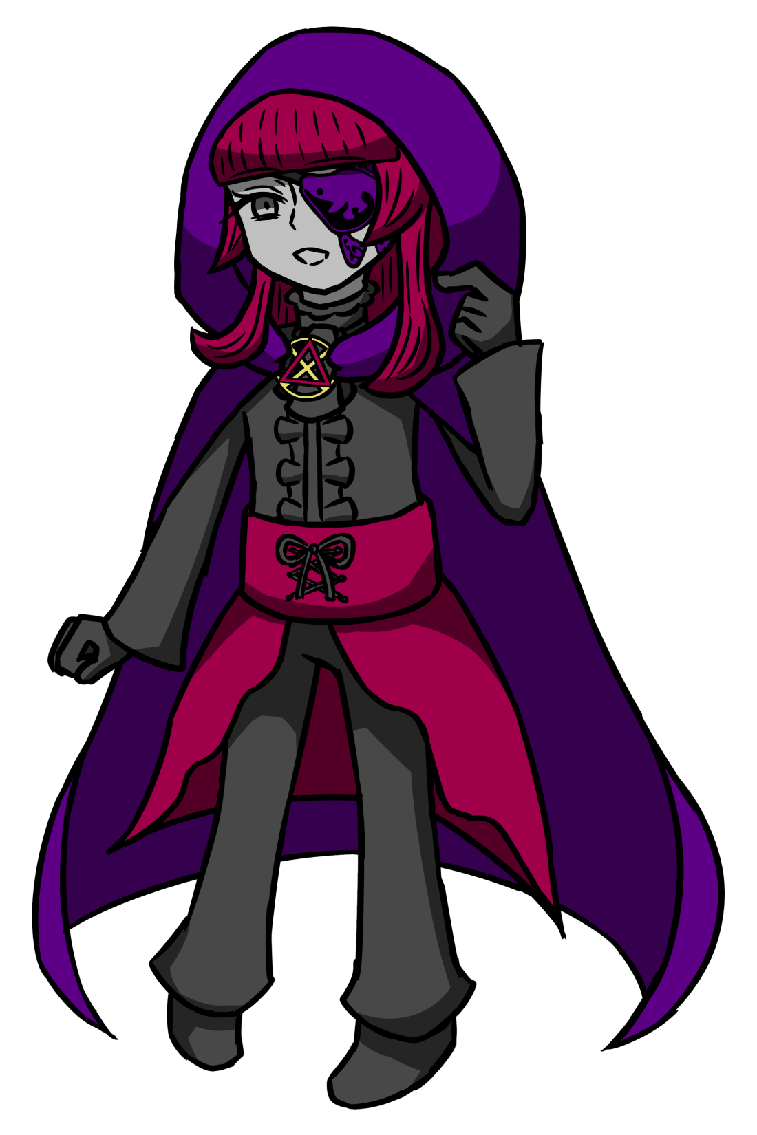 独学の中途半端な変身魔法により、眼帯の下は魚眼で首から下は紫色の鱗肌。